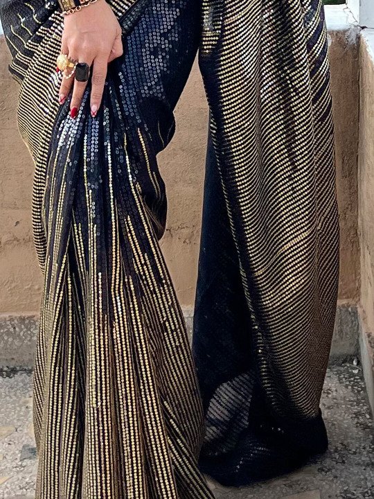 Black Embellished Sequinned Pure Georgette Saree