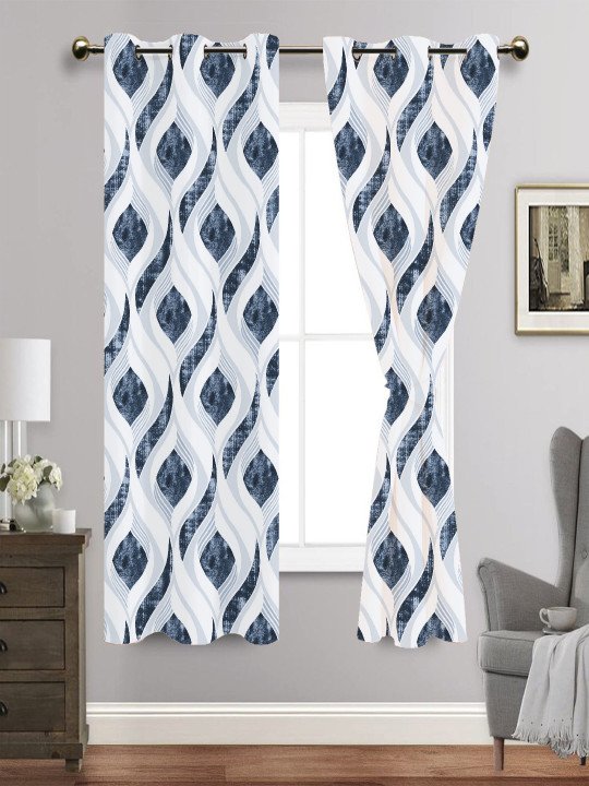 Grey & Blue Long Door Curtain