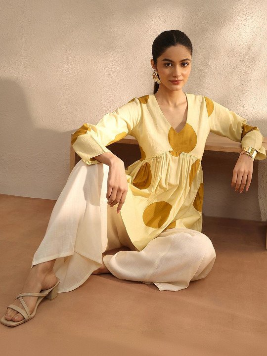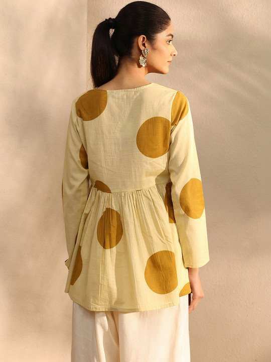 Cream-coloured A-Line kurtis