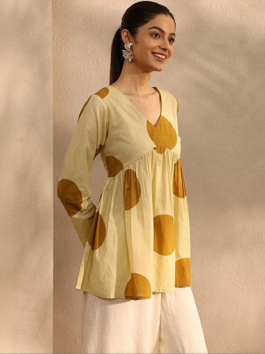 Polka Dot Printed V-Neck Empire Kurti