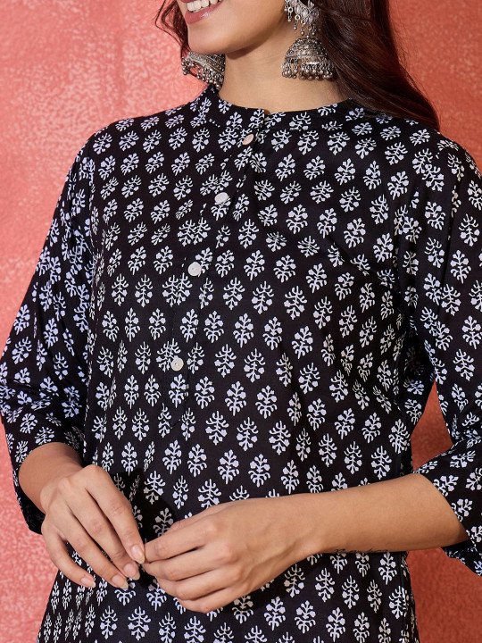 Block Printed Pure Cotton Straight Kurti